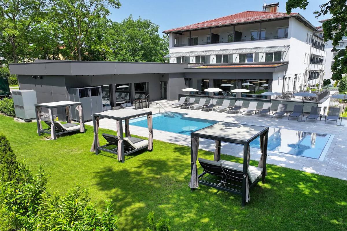 Das moderne Hotel liegt im Zentrum des Kurortes Bad Füssing in Bayern. Unweit von hier fließt der Fluss Inn, der auch die Staatsgrenze zu Österreich bildet. Im angrenzenden Garten gibt es einen erfrischenden Sommer-Salzwasserpool sowie verschiedene anspruchsvolle Liegeflächen. Direkt neben dem Pool befindet sich eine zwanglose, helle Bar. Die Therme Eins befindet sich in der Nähe des Hotels und für Gäste steht ein Shuttleservice zur Verfügung, der sie „im Bademantel“ direkt zur Therme bringt.