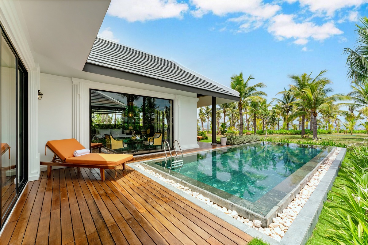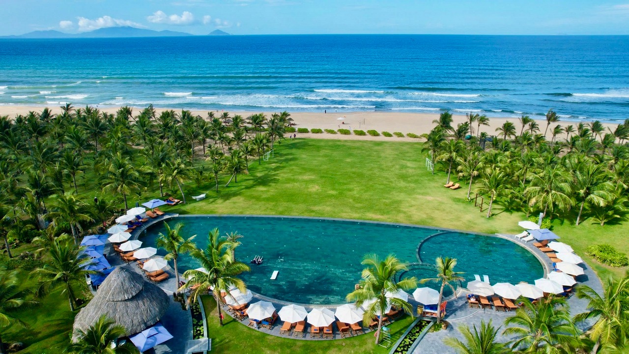 Das Resort liegt direkt am wunderschönen Binh Minh Beach und ist im Stil der eleganten Holzarchitektur (und der traditionellen Architektur) von Hoi An gestaltet. Das Hotel bietet luxuriöse Zimmer mit Meerblick und Villen mit moderner und geschmackvoller Ausstattung. Der Komplex bietet direkte Flughafentransfers, einen kostenlosen Shuttleservice in die Altstadt von Hoi An, eine Vielzahl erholsamer Spa-Behandlungen, einen Infinity-Pool am Strand, tägliche Kurse (Yoga, Tai Chi, Fitness) und kostenlose Fahrradnutzung. Das Hotel verfügt außerdem über das elegante Binh Minh Restaurant, eine Strandbar, eine Poolbar und eine Dachbar mit Blick aufs Meer.