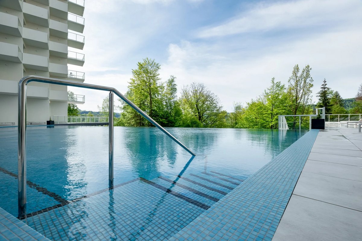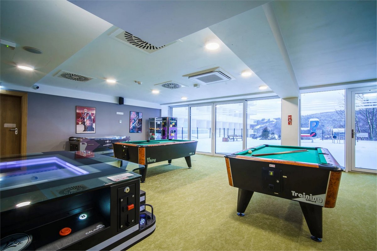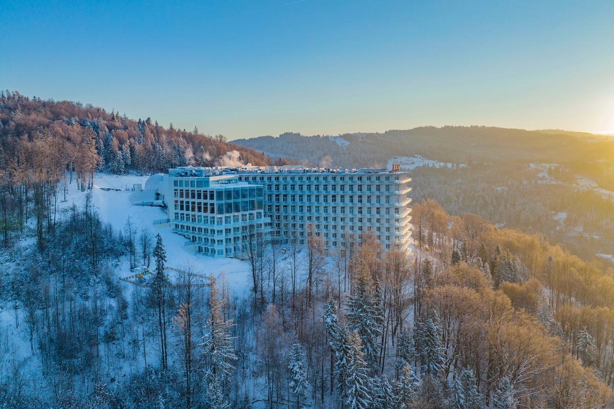 Das Hotel liegt am Hang von Góra Bukowa im nördlichen Teil von Weichsel (polnisch: Wisła) und fügt sich trotz seiner modernen Architektur harmonisch in die Umgebung der Beskiden ein. Neben erstklassigen Unterkunftsdienstleistungen bietet das Resort auch Zugang zu seinem eigenen Wasserpark (Blaue Lagune), einem der größten Hotel-Wasserparks in Polen. Gäste können auch das Panoramarestaurant, die Lobbybar, den Fitnessraum, das Kinderspielzimmer, Billard, Tischfußball, Darts, Airhockey oder das Informationszentrum des Hotels nutzen, wo sie Tipps zu beliebten Touristenattraktionen in der Umgebung erhalten.