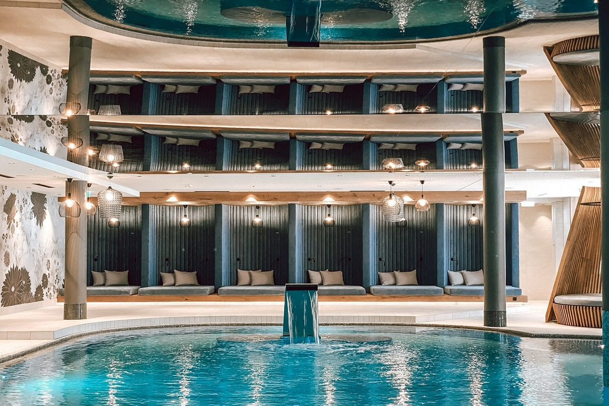 - Großes Hallenbad mit Blick auf die Großarler Bergwelt