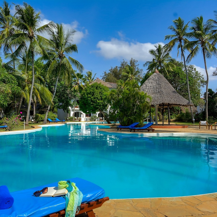 Das Hotel liegt in einem wunderschönen botanischen Garten in unmittelbarer Nähe zum Diani Beach. Es gilt als eines der schönsten in Kenia. Das Zentrum mit Geschäften, Restaurants und Bars ist ca. 5 km entfernt, der Transfer vom Flughafen dauert ca. 90 Minuten. Das Hotel betreibt ein Schwimmbad mit Wasserbar und organisiert außerdem eine Reihe verschiedener Aktivitäten.