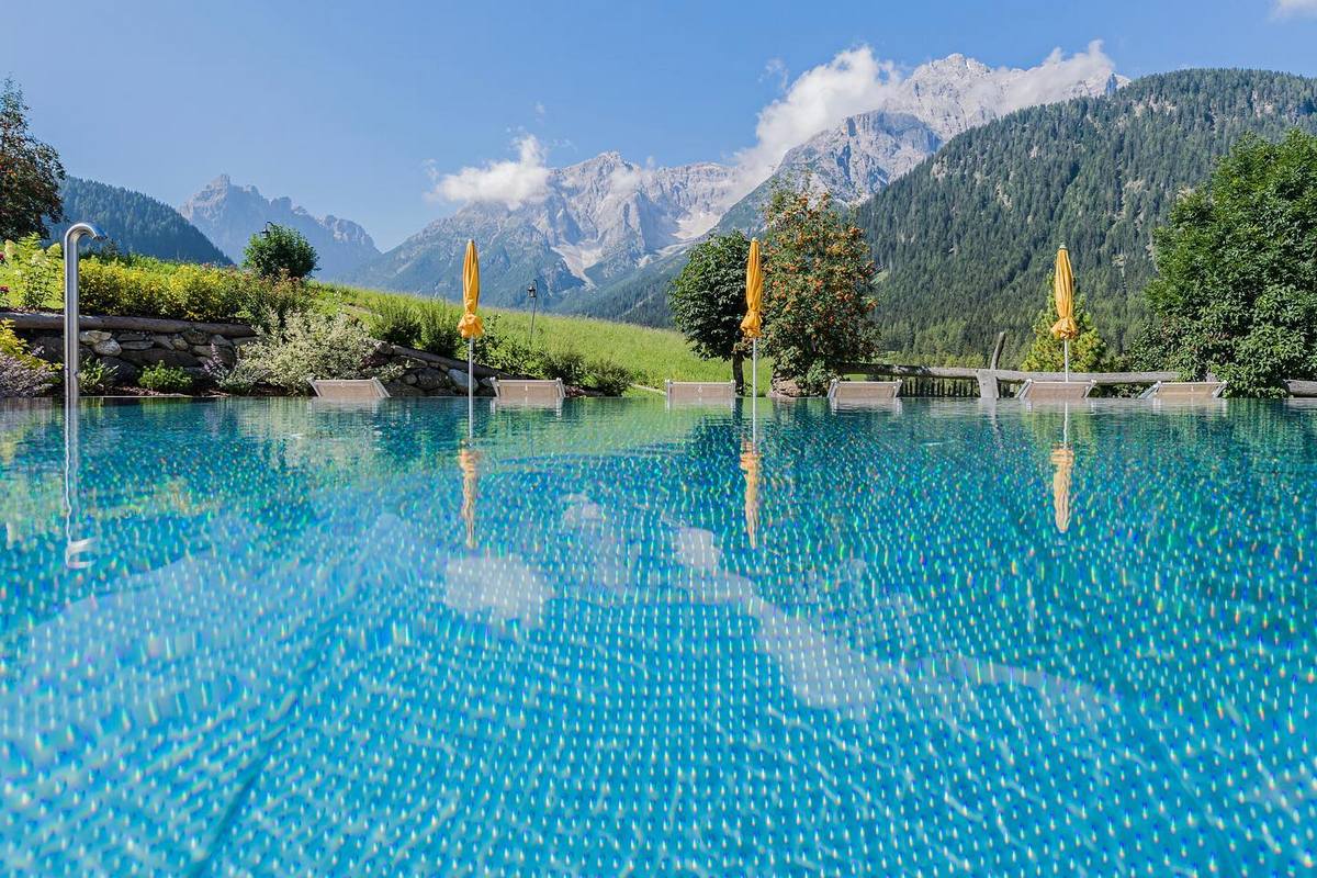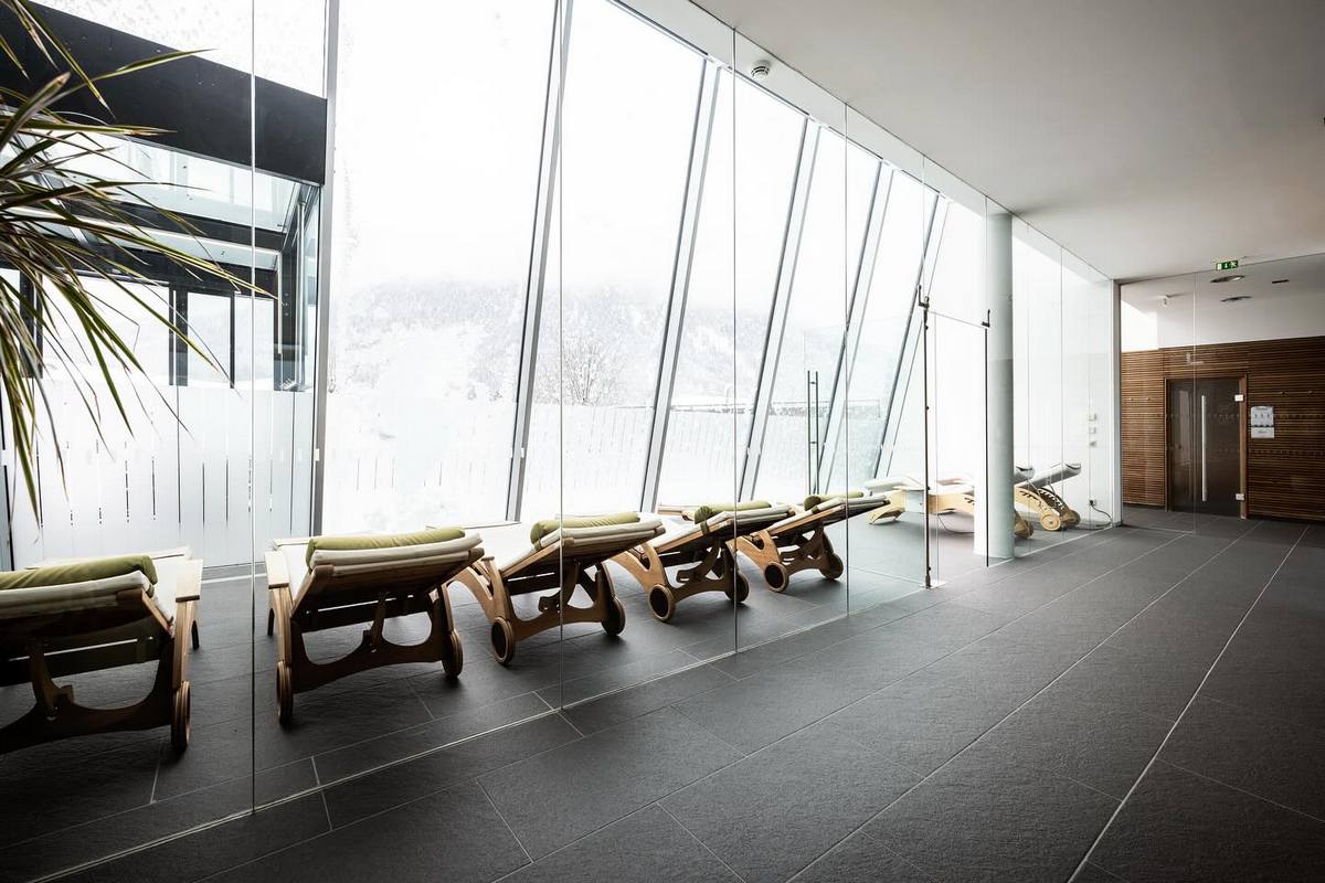 - Hallenbad mit Panoramablick auf die Dolomiten