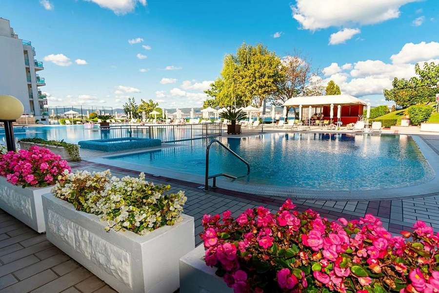 Ausgestattetes All-Inclusive-Hotelresort im nördlichen Teil des beliebten bulgarischen Ferienortes Nessebar. Die Strände der Sonnenküste sind ca. 250 m entfernt und auch das Zentrum der Altstadt von Nessebar ist gut erreichbar. Das Hotel verfügt über einen beheizten Innen- und Außenpool, einen Entspannungsbereich, einen Nachtclub, eine Lobbybar, eine Poolbar, eine Frischebar, einen Fitnessraum, einen Volleyballplatz und Streetfitness.