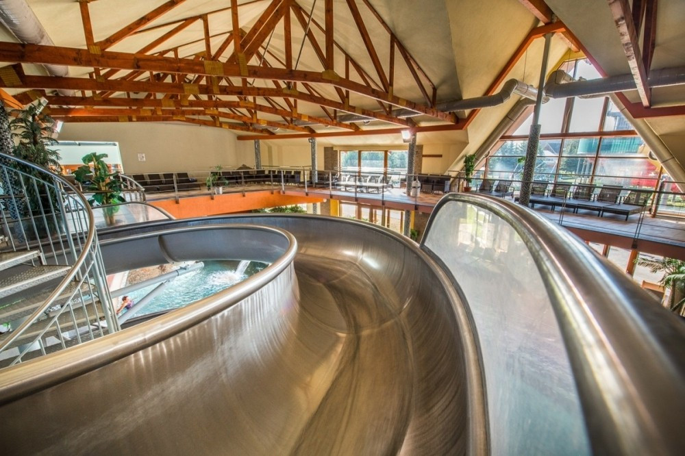 Das Hotel liegt direkt auf dem Gelände des Wasserparks Bešeňová und verfügt über ein modernes Design. Es basiert auf einer Kombination aus Glas, erhöhten Decken und großen Fenstern, die eine Galerie einzigartiger Ausblicke auf Chopok, das Panorama der Niederen Tatra und die umliegende Landschaft von Bešeňová schaffen. Die Anlage bietet ihren Gästen direkten Zugang zu Außenpools mit wohltuendem Thermalwasser. Darüber hinaus sind Tickets für die Seilbahnen und auch für den nahegelegenen Wasserpark Tatralandia erhältlich.