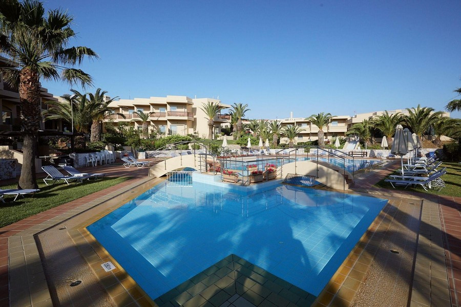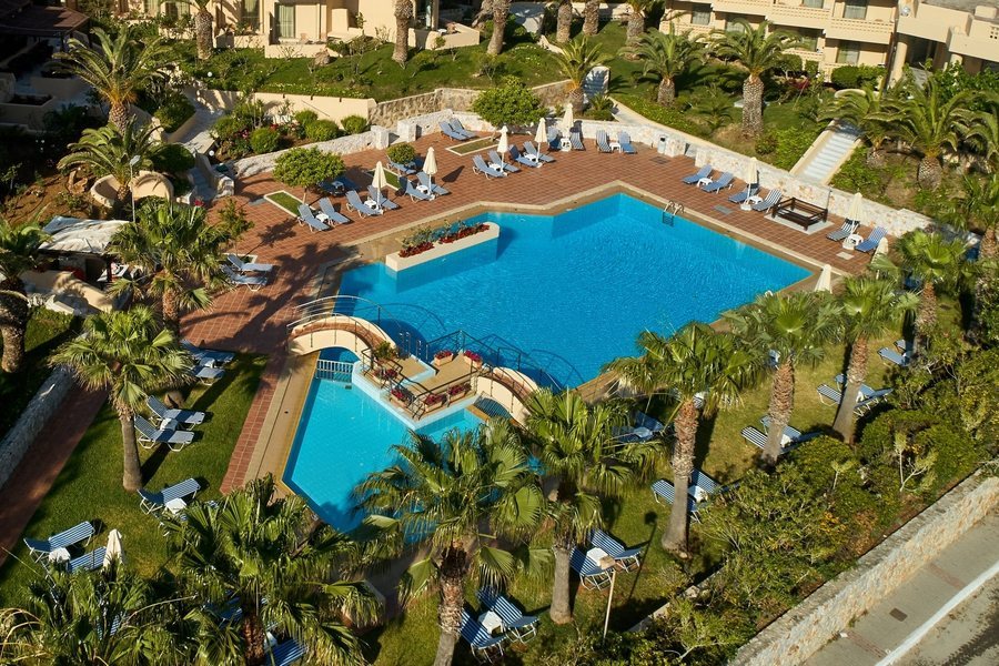 Das Giannoulis Santa Marina Beach Resort hat eine ausgezeichnete Lage. Es liegt im Dorf Agia Marina direkt am Sandstrand und nur 8 km vom Zentrum von Chania entfernt. Es bietet einen komfortablen und angenehmen Aufenthalt sowie einen idealen Ausgangspunkt für die Erkundung des westlichen Teils Kretas. Das Hotel ist in drei Gebäude unterteilt. Der Strandkomplex liegt direkt am Wasser, während der Poolkomplex und der Pearl Wing durch eine alte Staatsstraße von ersterem getrennt sind (aber für eine sichere Passage bequem durch einen unterirdischen Tunnel verbunden). Alle Zimmer sind modern ausgestattet und jeder Gast hat einen Blick auf den Garten, den Pool oder das Meer.