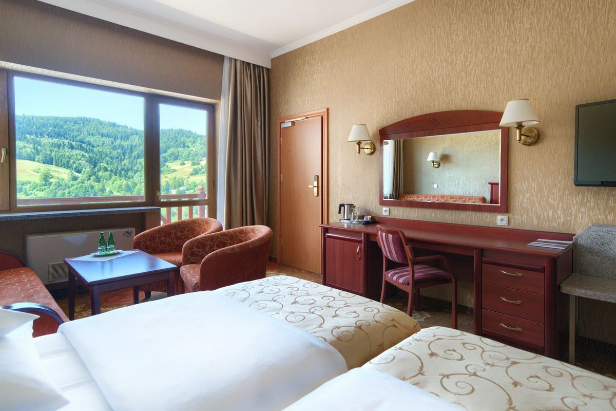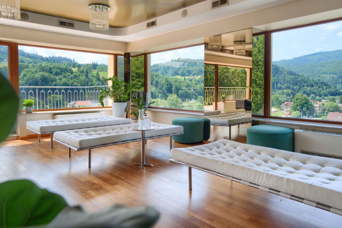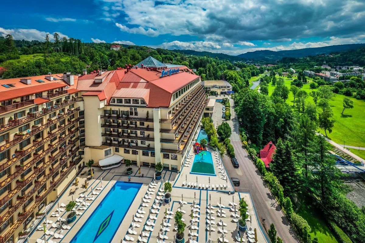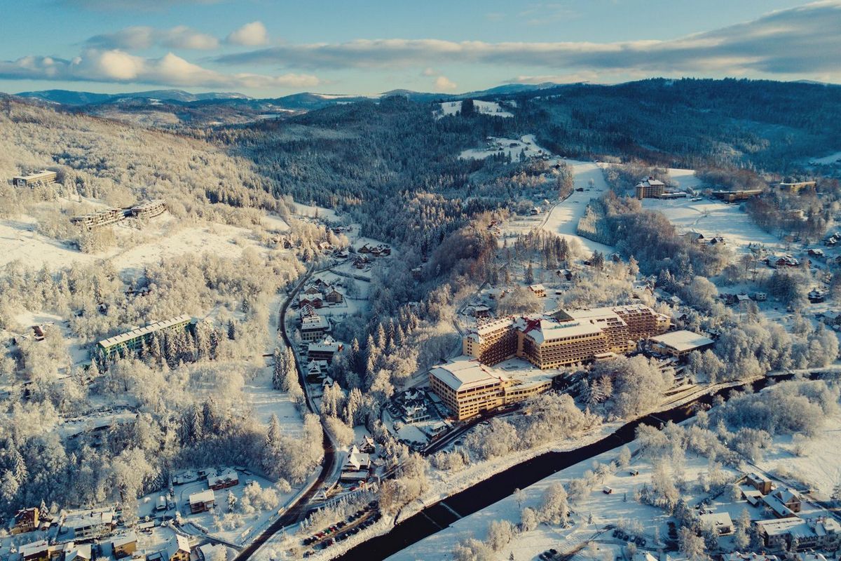 Das Resort liegt in den Bergen am Hang von Bukowa am Ufer des Flusses Visula und aus seinen Fenstern bietet sich ein einzigartiger Blick auf die bezaubernden Ecken der Schlesischen Beskiden. Dank der hervorragenden Lage des Hotels können die Gäste nicht nur die wunderschöne Landschaft, sondern auch zugängliche Pisten, Wanderwege und andere Attraktionen der Beskiden genießen. Das Angebot im Bereich der Gastronomie ist in der Tat zu reichhaltig – das Hotel verfügt über drei Restaurants (Červená, Zelená und Staropolská) oder einen „All-Inclusive“-Bereich. Das Resort umfasst auch einen ganzjährig geöffneten Komplex aus Pools und Wasserattraktionen namens „Tropicana Water Park“.
