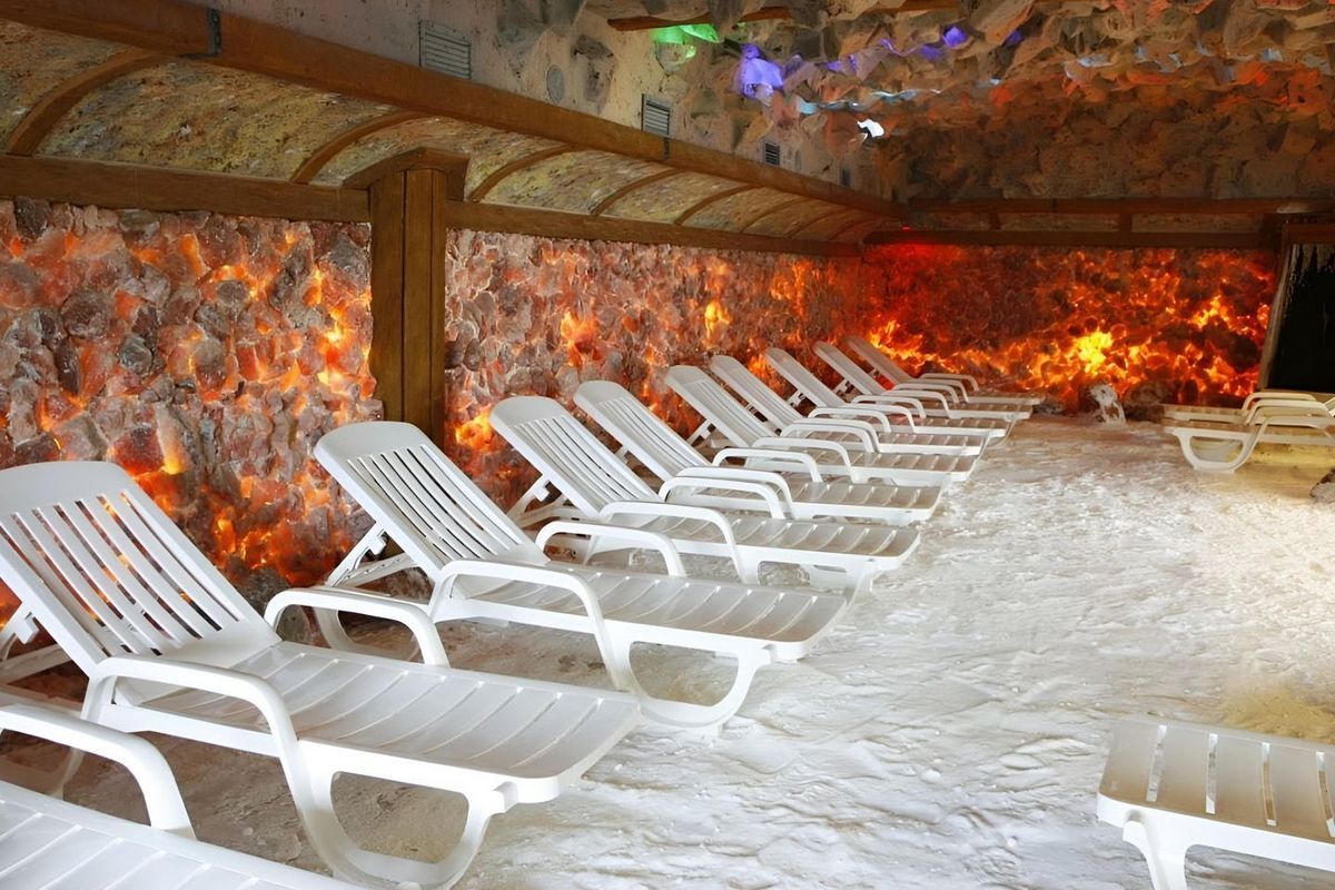 - Salzgrotte, Raum mit Gradierwerken aus Sole, Lichttherapie