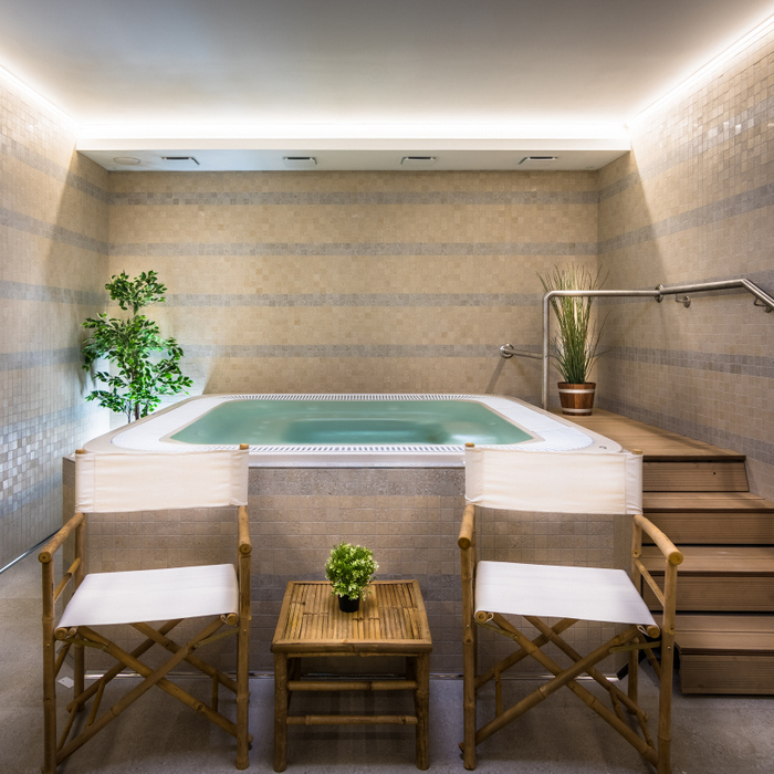 - Innen-Entspannungsbecken (15×7 m, Temperatur 32 °C)