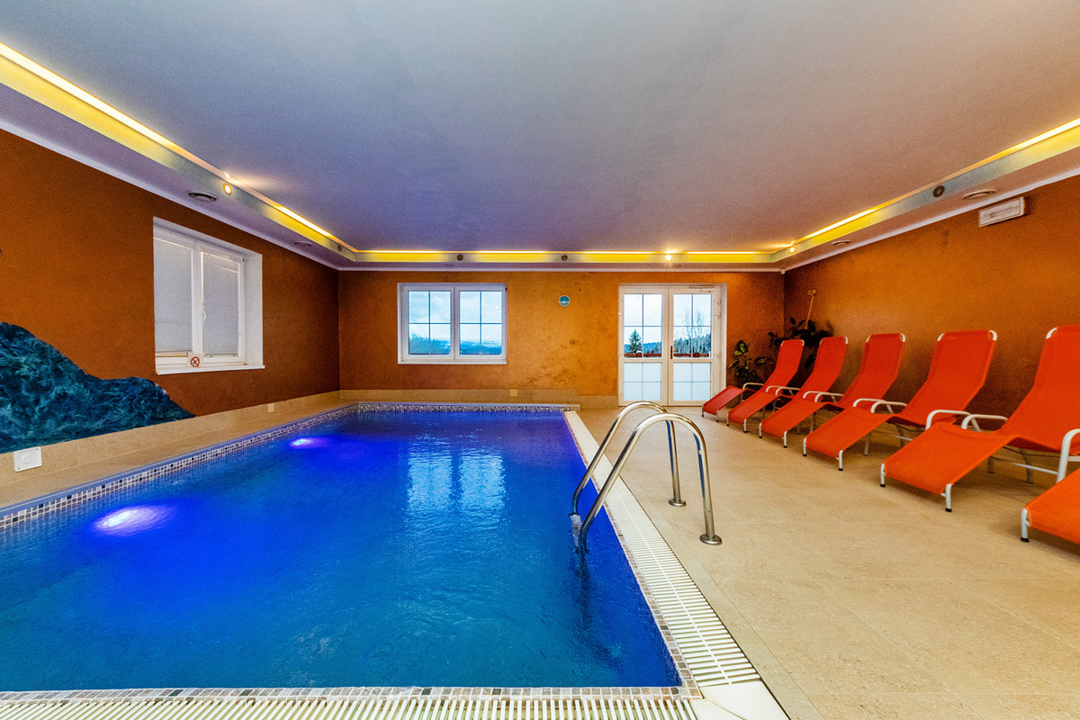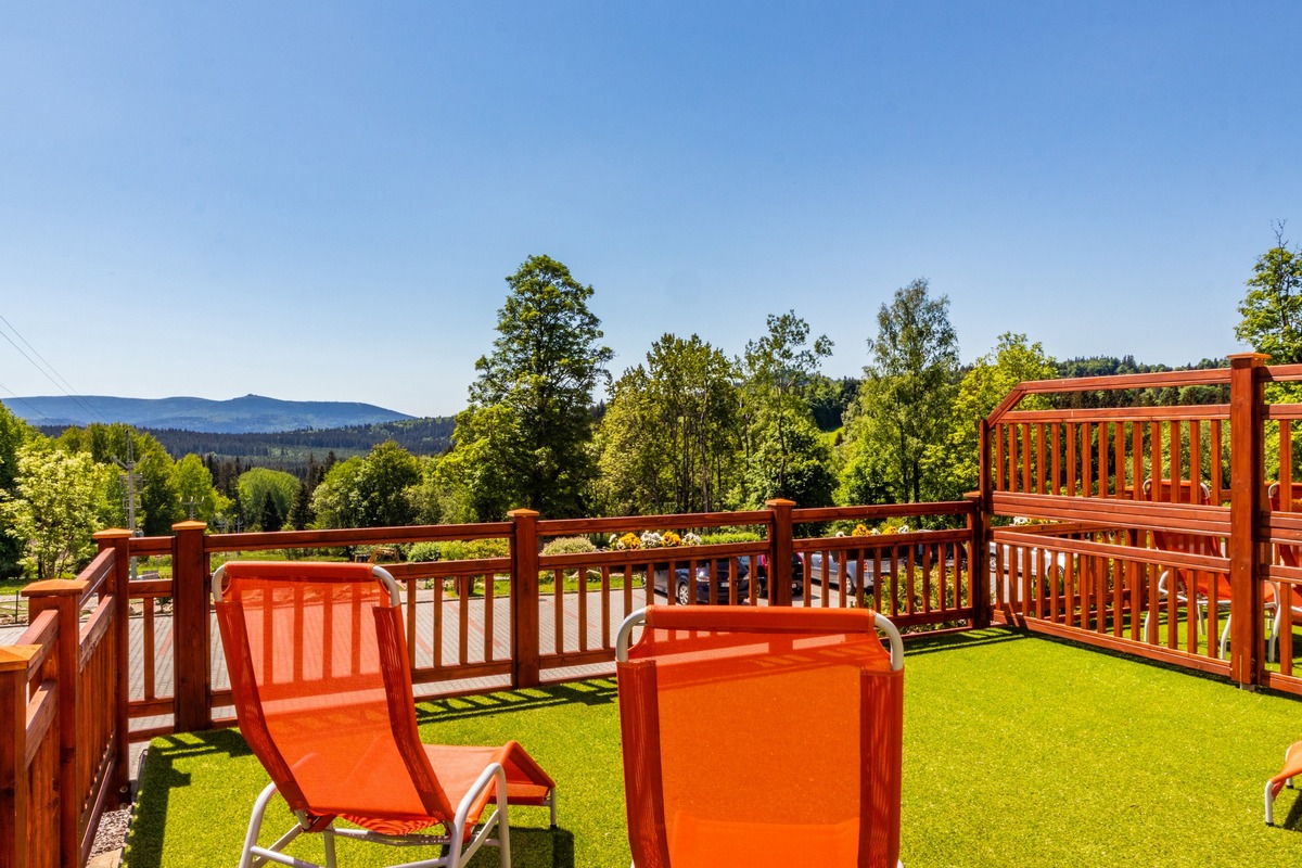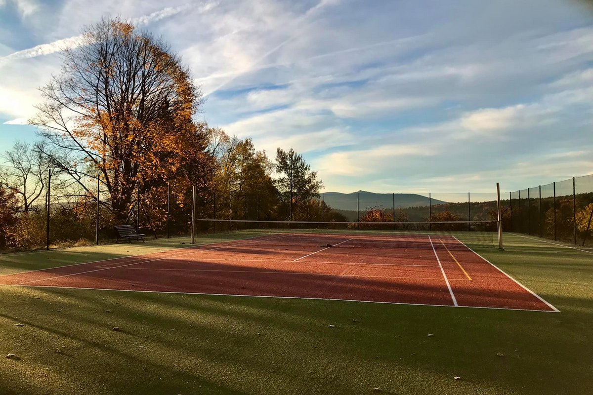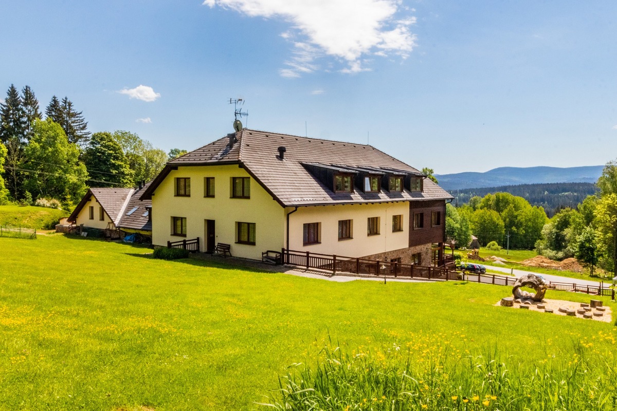 Die Anlage ist als Bergfamilienhotel konzipiert und befindet sich im Dorf Tusset (tschechisch Stožec) im Böhmerwald. Innerhalb der Unterkunft stehen mehrere Zimmertypen zur Verfügung – vom Doppelzimmer bis hin zum großen Familienzimmer und Apartment. Das Hotel verfügt außerdem über ein eigenes Schwimmbad, einen Wellnessbereich und ein Restaurant. In der Umgebung können Sie Wander-, Rad- und Langlaufloipen, Abenteuergolf (18 Löcher), eine Kinderwelt oder einen multifunktionalen Spielplatz (Tennis, Lazy Tennis, Badminton, Korbball) nutzen.