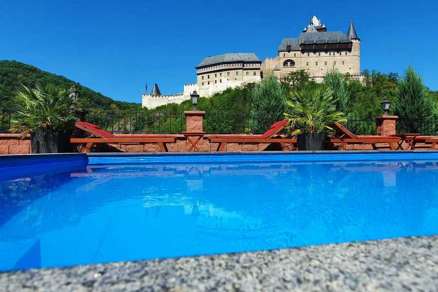 Ruhige Hotelunterkunft, nur 50 Meter Luftlinie von der beliebten Karlstein-Burg (tschechisch hrad Karlštejn) entfernt. Neben regulären Familienunterkünften wird das Gebäude auch für die Ausrichtung von Hochzeiten und Firmenveranstaltungen genutzt. Gäste des Hotels können den hoteleigenen Swimmingpool, der mit Salzwasser gefüllt ist und einen Blick auf die Burg bietet, kostenfrei nutzen.