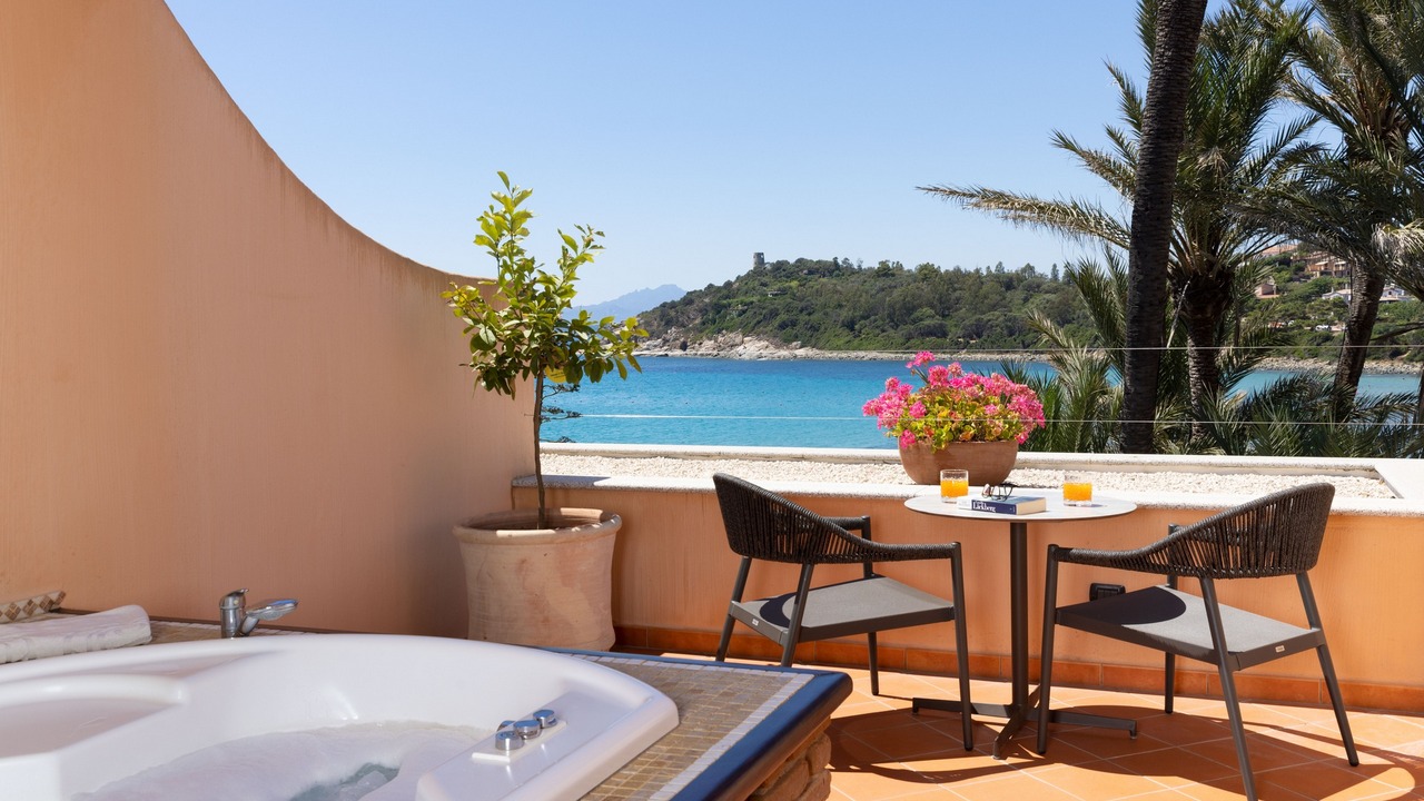 Das Resort liegt direkt in der Bucht von Porto Frailis, unweit der Stadt Arbatax, an der Ostküste Sardiniens. Dieses Gebiet zeichnet sich durch seine gegliederte Küste mit vielen Städten, kleineren Stränden und unberührter Natur aus. Das Hotel ist in einem unverwechselbaren mediterranen Stil gestaltet. Die meisten Zimmer bieten Meerblick und einen kleinen Balkon oder eine Terrasse mit Blick auf die Bucht. Den Gästen stehen ein Restaurant, eine Bar auf einer Panoramaterrasse, ein Fitnesscenter, Tennisplätze, Schwimmbäder und ein Spa mit Meerblick zur Verfügung.
