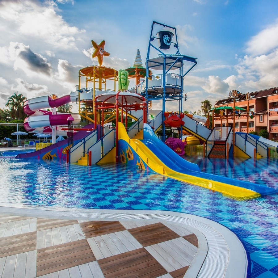 • Wasserpark mit Pools, Rutschen und Sportplätzen