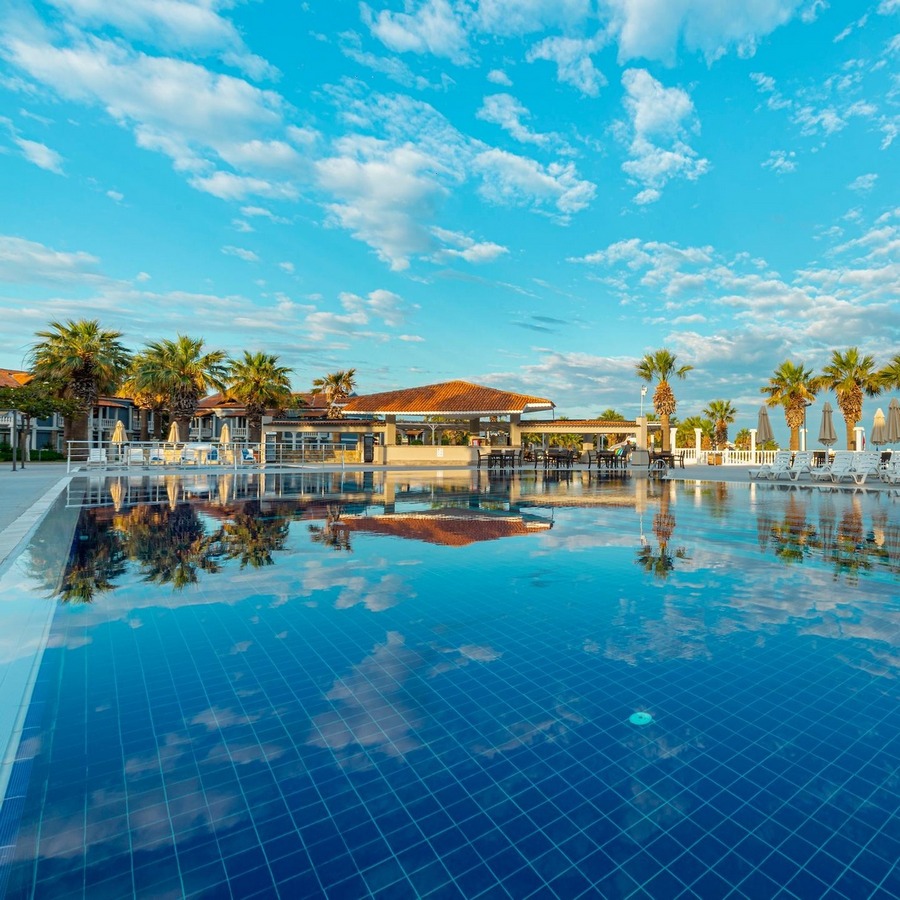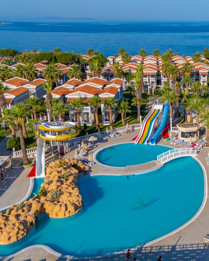 Das Badeort erstreckt sich über eine Fläche von über 40.000 m² und befindet sich im Ferienort Didim. Das Stadtzentrum ist ca. 7 km und die Provinzhauptstadt Aydın ca. 100 km entfernt. Die gesamte Anlage bietet seinen Gästen ein breites Spektrum an Entspannungs- und Unterhaltungsmöglichkeiten. Das Hotel verfügt über eine Lobby-Rezeption, Restaurants im Innen- und Außenbereich, eine Konditorei und 4 À-la-carte-Restaurants (Fisch, Türkisch, Italienisch und Indisch), kostenloses Internet in allen Bereichen, einen Friseur, Wellnesseinrichtungen, eine Autovermietung, Tischtennis, Darts, einen Tennisplatz, Minigolf, ein Beachvolleyballfeld, Schwimmbäder, Liegewiesen, eine Lobbybar, eine Poolbar, eine Snackbar und ein Amphitheater.
