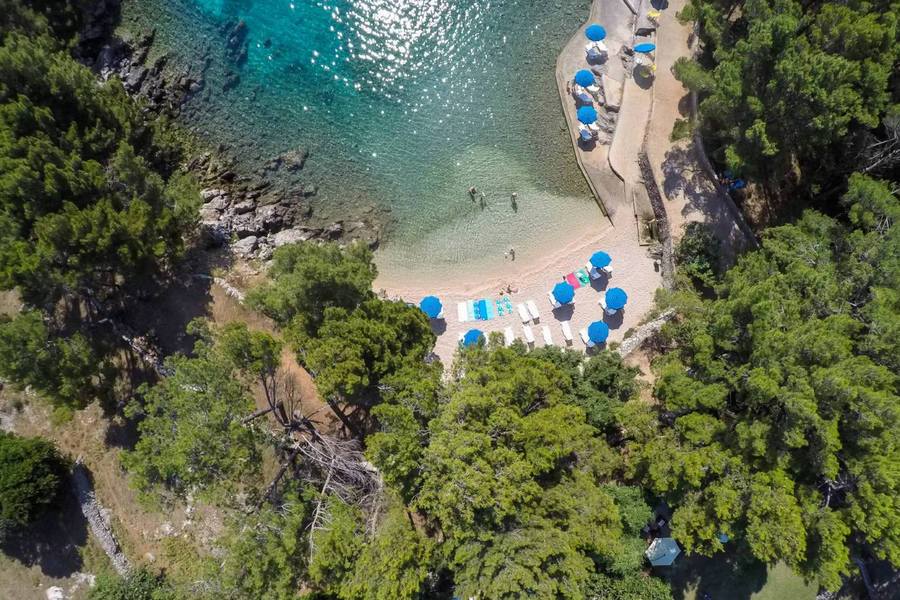 Das Resort liegt im Küstenort Nerezine am Fuße des Berges Osoršćica auf der Insel Lošinj. Die Meeresküste ist etwa 400 Meter entfernt. Dies ist in der Regel ein kleineres Familienhotel, wodurch das Personal den Gästen mehr Aufmerksamkeit schenken kann. Die Zimmer bieten Aussicht auf das Meer oder das üppige Grün des Hügels Osoršćica. Das Hotel Beach Galboka liegt in einer ruhigen Bucht, umgeben von einem Pinienwald. Es gibt eine hoteleigene Bar, die Getränke und Snacks serviert, sowie umfangreiche Wassersportmöglichkeiten. Der Wellnessbereich des Hotels ist kleiner, dafür aber umso angenehmer, da er sowohl einen Innen- als auch einen Außenpool umfasst.