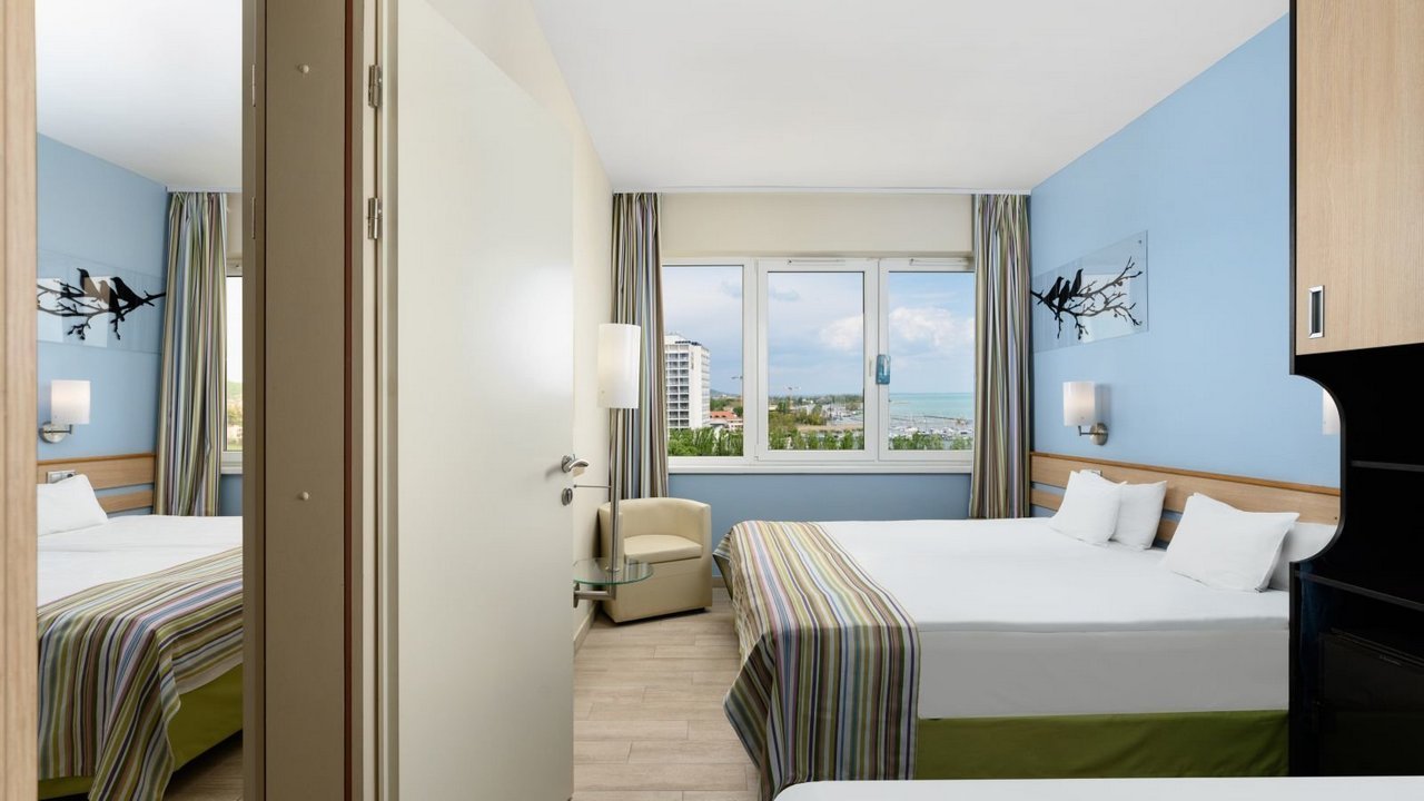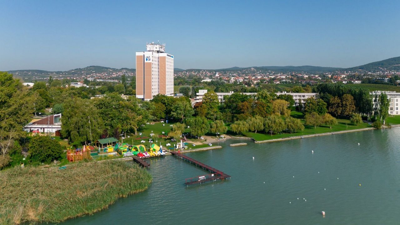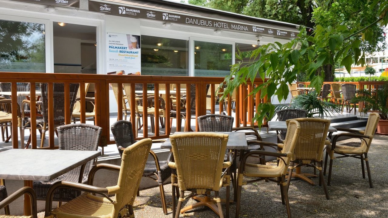 Das umfassend ausgestattete All-Inclusive-Hotel Marina liegt am Rande der Stadt Balatonfüred (german Bad Plattensee) am Nordufer des Plattensees (Balaton). Das Hotel liegt direkt an der Küste und betreibt einen eigenen geschlossenen Strand. Das Gebäude bietet einen wunderschönen Blick auf den Balaton und die nahegelegene Halbinsel Tihany. Das Hotel bietet verschiedene Wasserattraktionen und eine ganze Reihe von Sportmöglichkeiten.