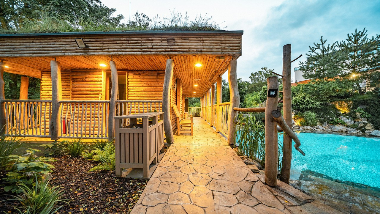 - 2 × Innen- und 2 × Außen-Thermalbecken (Temperatur bis 37 °C)