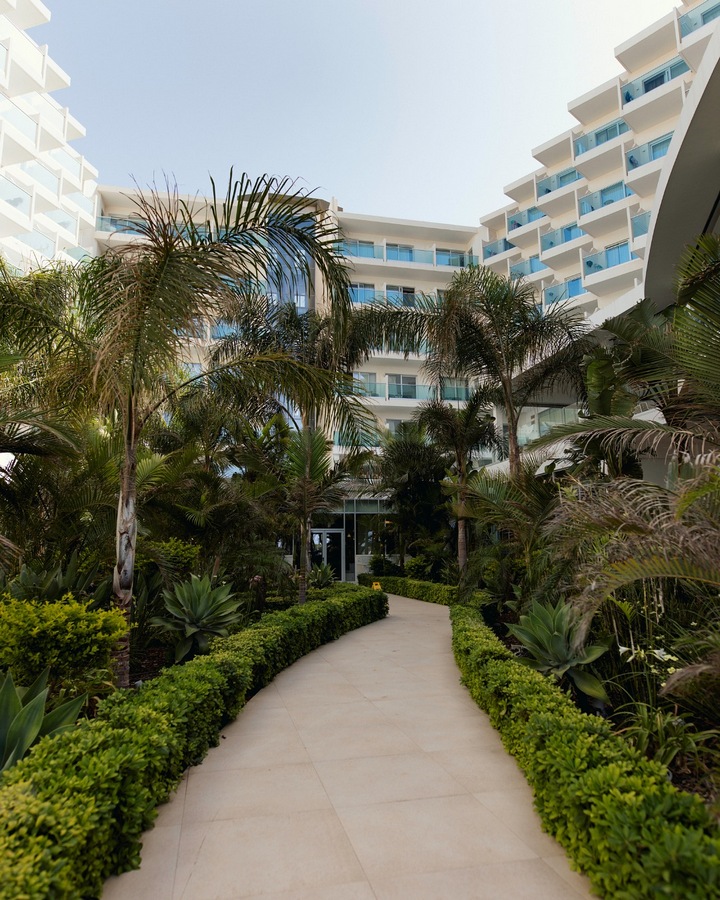 Das Resort liegt am beliebten Strand Nissi im Ferienort Ayia Napa auf Zypern. Das Stadtzentrum ist etwa 2 km entfernt, und nur 3 km vom Hotel entfernt befindet sich ein großer Wasserpark im Stil des antiken Griechenlands (WaterWorld Themed Waterpark Ayia Napa). Die Fahrt vom internationalen Flughafen Larnaca dauert nur 35 Minuten. Den Gästen stehen elegante Zimmer und Suiten, luxuriöse Annehmlichkeiten, Bars, Geschäfte und nicht zuletzt die wunderschöne Umgebung (Strände, Hafen, Wander- und Radwege, Sehenswürdigkeiten und Attraktionen) zur Verfügung. Das Hotel bietet außerdem eine Lobby, drei Hauptrestaurants, ein Kinderspielzimmer, einen Tennisplatz mit Kunstrasen, ein Wellnesscenter, Schwimmbäder und ein Fitnessstudio.