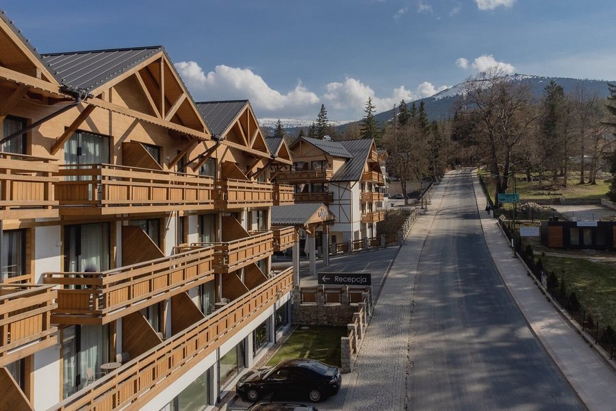 Das elegante Hotel im alpinen Stil liegt in der Stadt Szklarska Poręba, 3 km vom Skigebiet Ski Arena Szrenica und nur etwa 15 km vom berühmten tschechischen Ferienort entfernt Harrachsdorf (Harrachov) stark. Diese Anlage ist eine ideale Wahl sowohl für einen aktiven Urlaub als auch für einen erholsamen Urlaub. In der Nähe gibt es viele interessante Orte und Attraktionen: Seilpark, Dinopark, Mineralogisches Museum, Szklark-Wasserfall, Iserbahn und andere. Das Hotel verfügt außerdem über Swimmingpools und ein Wellnesscenter.