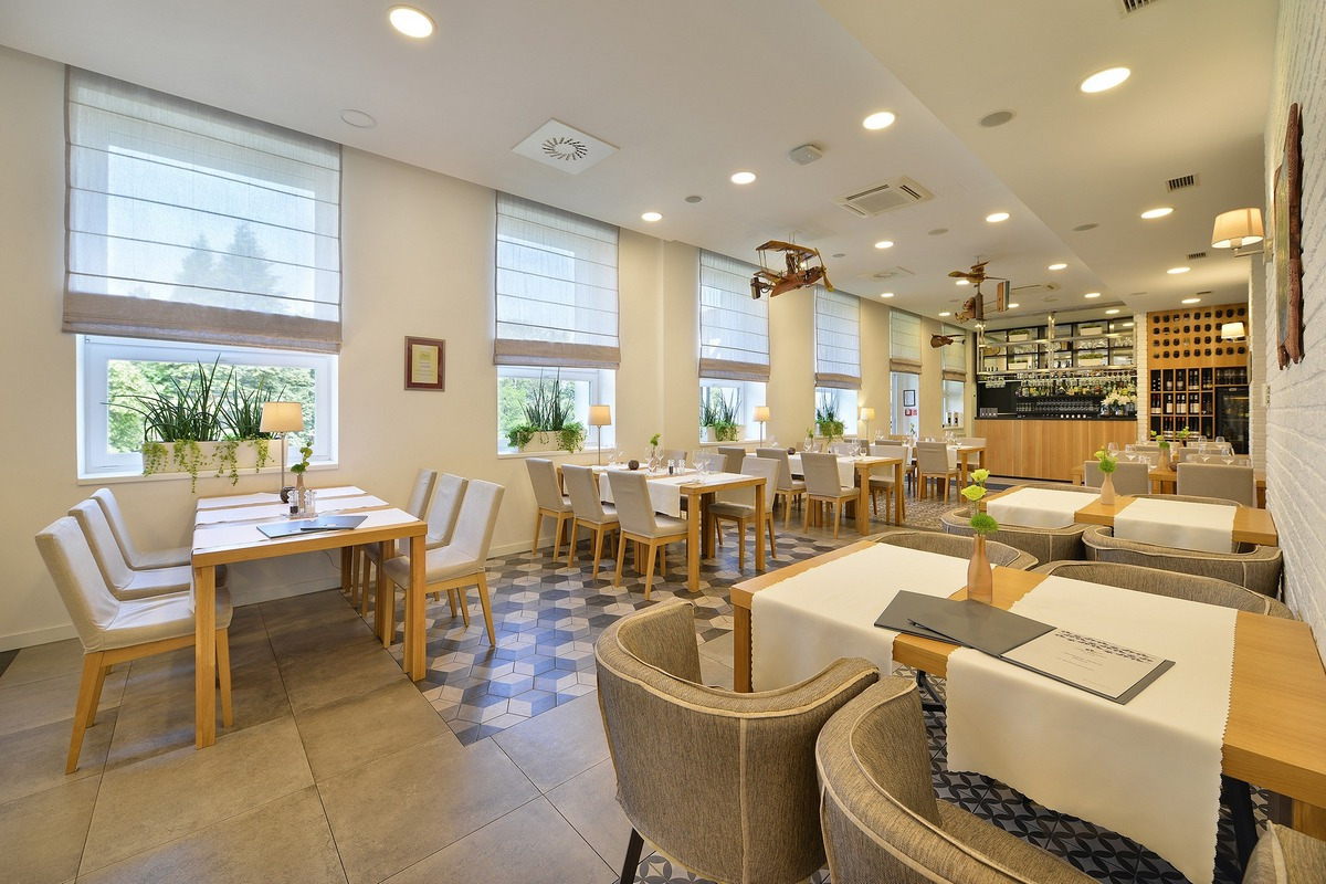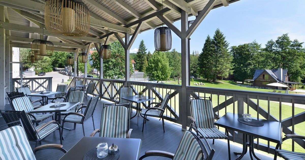Das Resort liegt im Erholungsgebiet Harmonia am Fuße der Kleinen Karpaten, etwa 2 km von der Stadt Modern (slowakisch Modra) entfernt. Das Hotel bietet ein Restaurant, ein Café, Terrassen, eine „Bierkneipe“ und auf einer Fläche von rund 2,5 ha gibt es verschiedene Sportplätze und Grünflächen, die vielfältig genutzt werden können. Nach einem aktiven Tag lässt es sich ideal im voll ausgestatteten Wellnesscenter entspannen, zu dem auch ein Swimmingpool gehört.