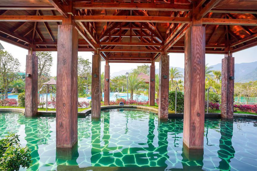 Das Resort liegt auf dem Gebiet der Stadt Kanton (Guangzhou in China), etwa 20 km vom Nankunshan National Forest Park entfernt. Die gesamte Gegend ist bei Radsportbegeisterten beliebt, zu diesem Zweck können im Hotel Fahrräder gemietet werden. Der Komplex betreibt Restaurants, Bars im chinesischen und westlichen Stil, ein Freizeitzentrum, ein Kinderspielzimmer und Schwimmbäder. Sie sind das ganze Jahr über geöffnet und zwischen ihnen befindet sich auch ein Rutschenkomplex für kleinere Kinder.