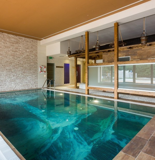 - Hallenbad mit Gegenstromanlage (Tiefe 130 cm)