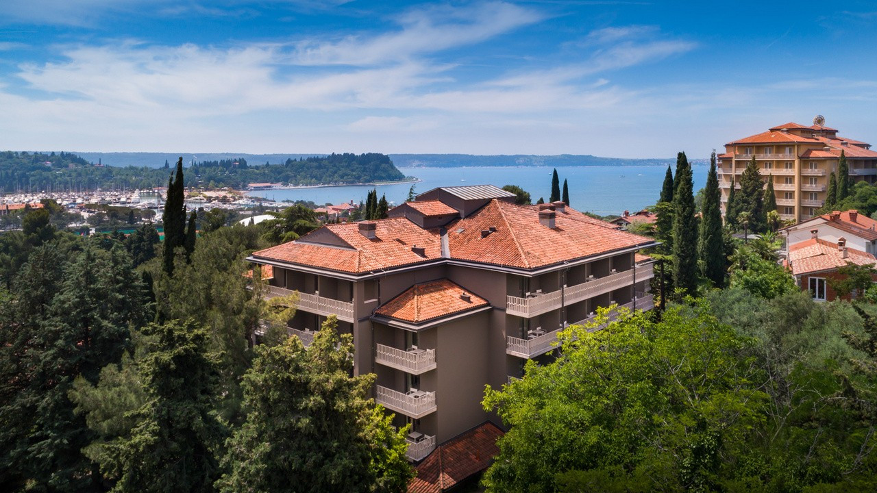 Der Komplex liegt auf einer Anhöhe auf dem Hügel von St. Lovrenc und bietet somit einen atemberaubenden Blick auf die moderne, pulsierende Stadt Portoroz sowie den gleichnamigen Hafen. Das Hotel bietet Einrichtungen für eine Vielzahl von Aktivitäten, sowohl im Wasser als auch außerhalb des Wassers. Das Angebot umfasst ein neu eröffnetes Wellnesscenter, einen Innenpool oder einen Außenpool auf der Terrasse mit Blick auf die Küste. Darüber hinaus können die Gäste alle Vorteile der Stadt Portorož genießen, einschließlich des Stadtstrandes, der etwa 600 m vom Hotel entfernt liegt.