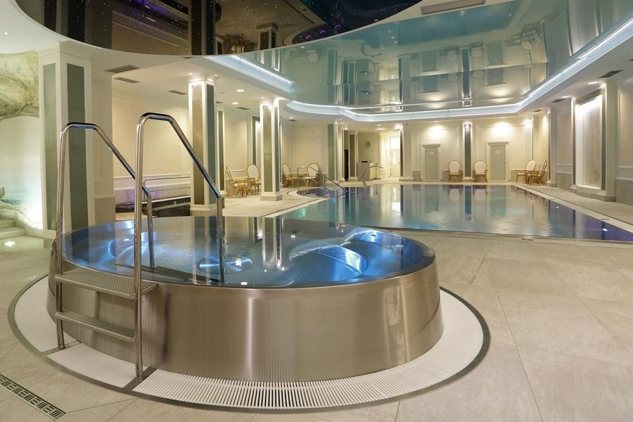 - Hallenbad (12,5 × 6,5 m, Temperatur 29 °C)