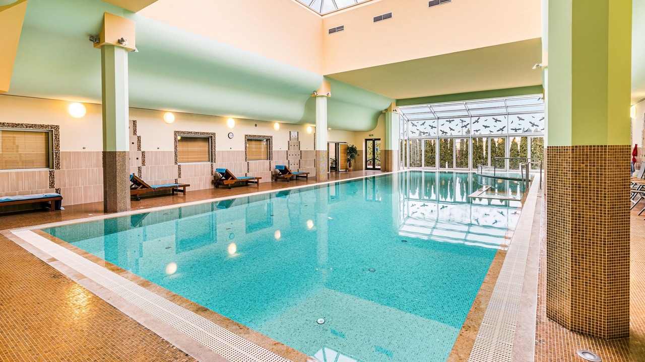 - Hallenbad (Länge 22 m), Planschbecken