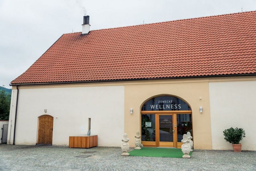 Das Hotel ist von einem angelegten Garten umgeben und bietet romantische Unterkünfte in einem Schlossgebäude aus dem 17. Jahrhundert. Die Anlage eignet sich nicht nur für Liebhaber von Schlossunterkünften, sondern auch für Fans von Wanderungen und Radtouren. Ein Fahrrad- und E-Bike-Verleih kann hierfür gute Dienste leisten. Den Gästen steht auch das Schlosswellness zur Verfügung, das die Tradition der nicht mehr existierenden Wasserbäder im nahegelegenen Dorf Odolenov fortsetzt. Außerdem gibt es ein Schwimmbad, das sich in einer Glashalle mit schönem Blick auf den Teich befindet.