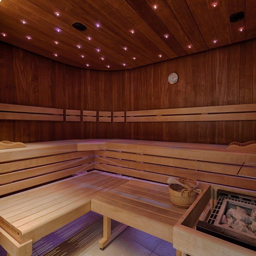 - Kräuterdampfbad (Temperatur 40–45 °C, Luftfeuchtigkeit bis zu 95 %)