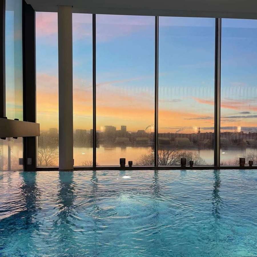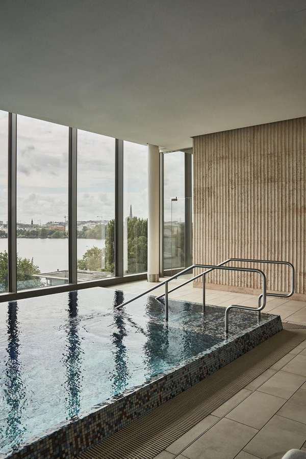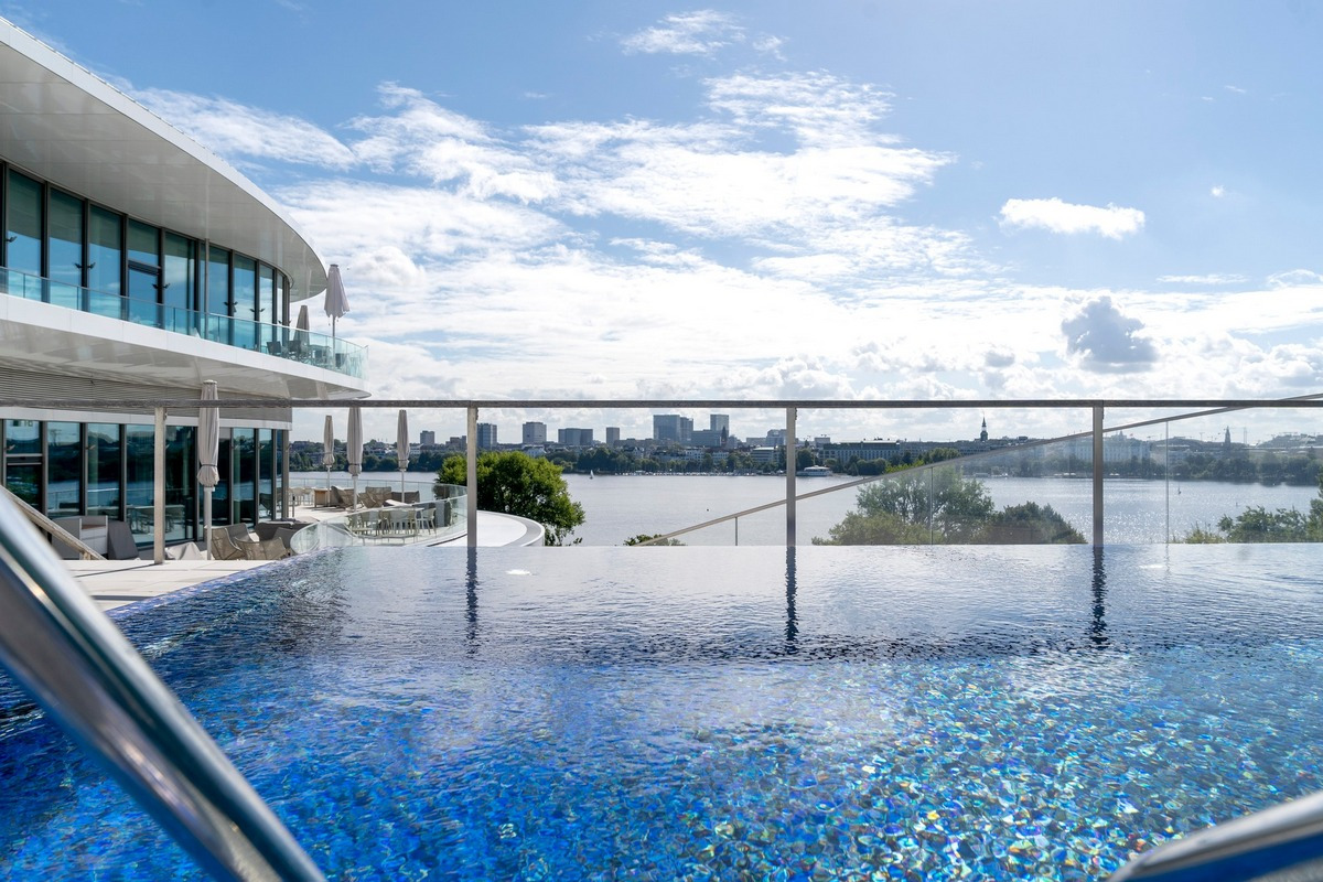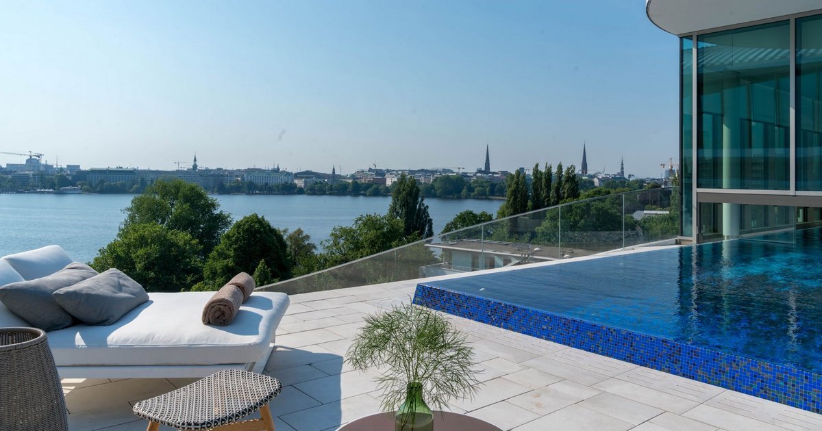 Das Luxushotel „The Fontenay“ liegt am Ufer des Alstersees in Hamburg, nur wenige Gehminuten von der berühmten Einkaufsmeile Jungfernstieg entfernt. Das Resort betreibt ein 1.000 m² großes Spa auf dem Dach mit Innen- und Außenpool. Genießen Sie eine Mahlzeit im Gourmetrestaurant Lakeside mit Blick auf die Alster.