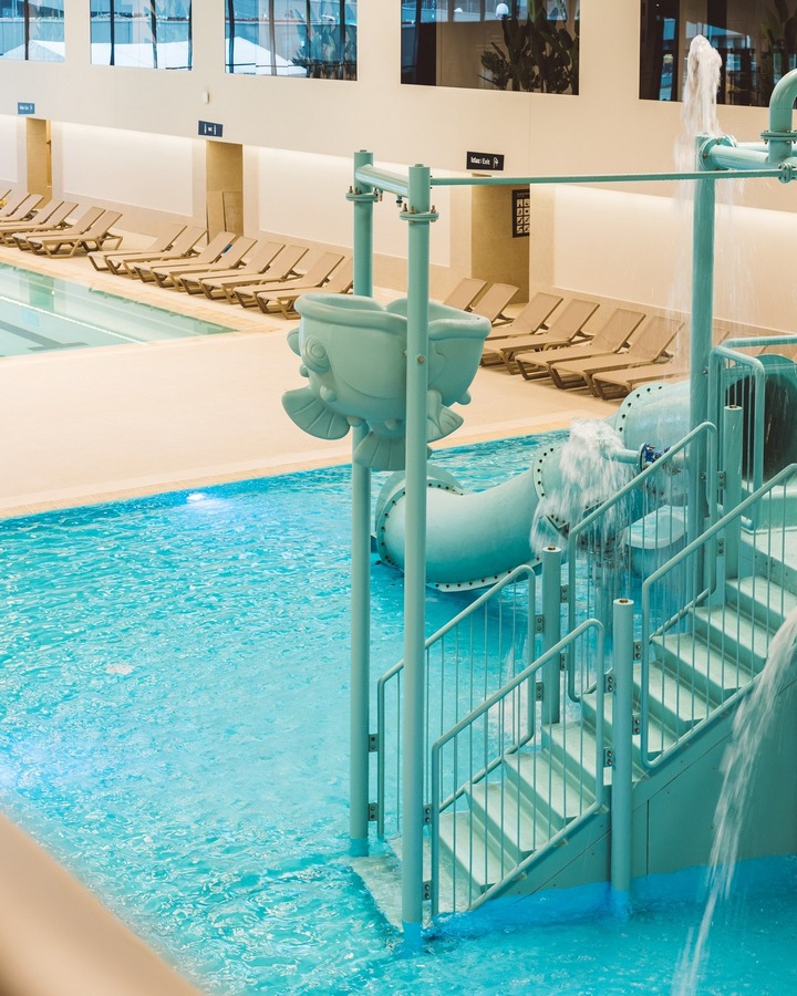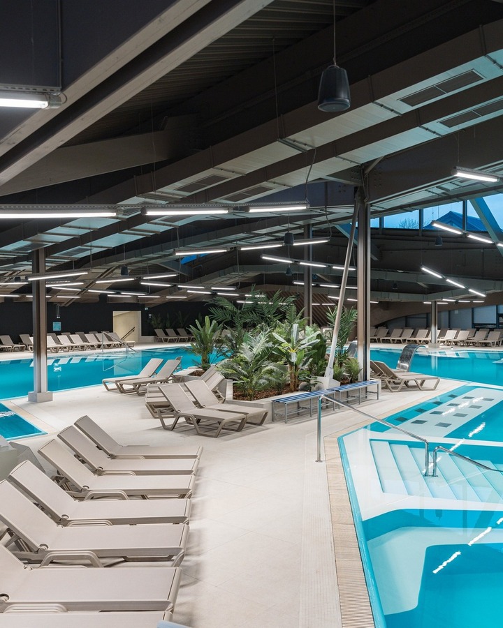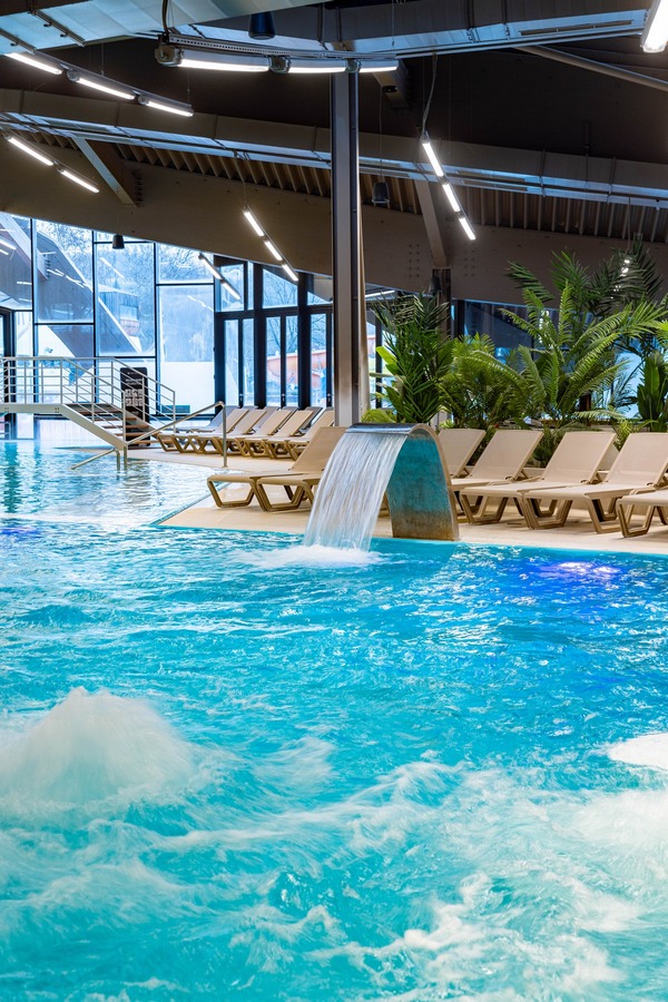 - Wasseroase (Innen- und Außenpools, Wasserfälle, Attraktionen, Ruhezonen)