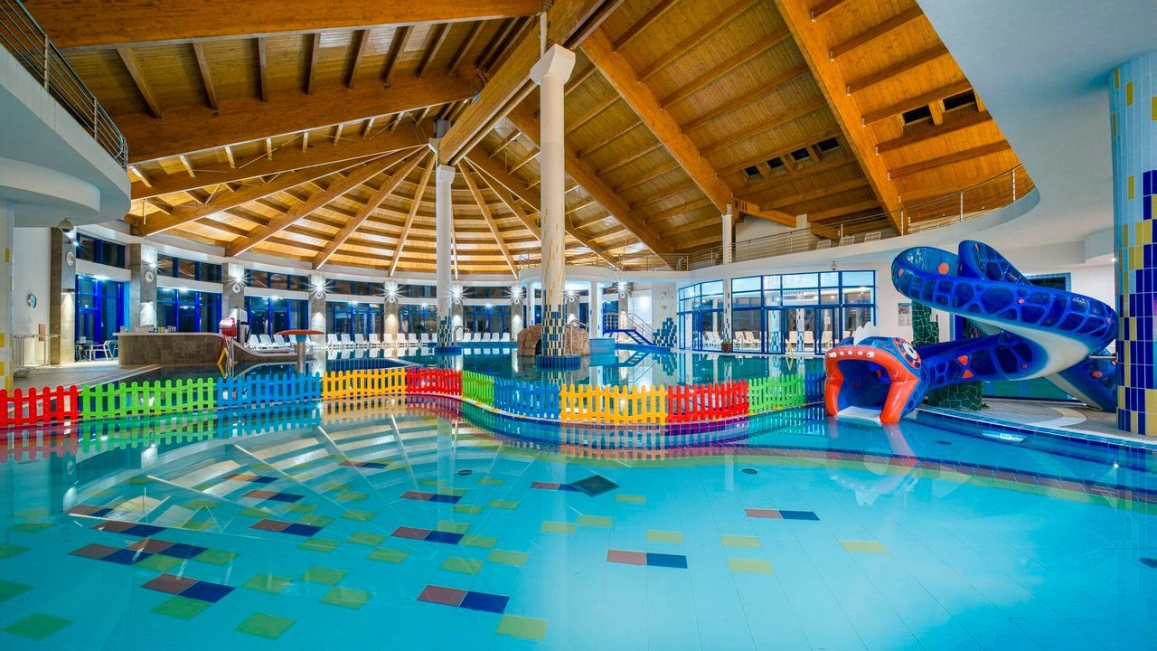 - Hallenbad für Kinder mit Wasserrutsche (Tiefe bis 70 cm, Temperatur 34 °C)