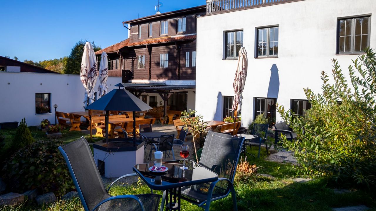 Das Wellnessresort Valnovka liegt in Kamenitz bei Prag (Kamenice u Prahy), 8 km südlich der Stadtgrenze von Prag und etwa 25 km südöstlich des Zentrums. Der Wasserpark Aquapalace ist ca. 20 km entfernt. In der Nähe des Hotels befinden sich der Aussichtsturm Ládví, die Kamenická Lindenallee, die Felsen des Herren und der Oberer Feuerwald. In den umliegenden Dörfern finden Sie auch das Militärtechnische Museum, das Schloss Týnec nad Sázavou oder die Brauerei Velké Popovice. Das Hotel bietet seinen Gästen die Möglichkeit, in einem historischen Blockhaus oder im Hotel selbst zu übernachten. Dort können Sie auch ein Restaurant, einen Garten mit Grill, einen Fitnessraum, Trainingsprogramme und eine Sauna mit Schwimmbad nutzen.