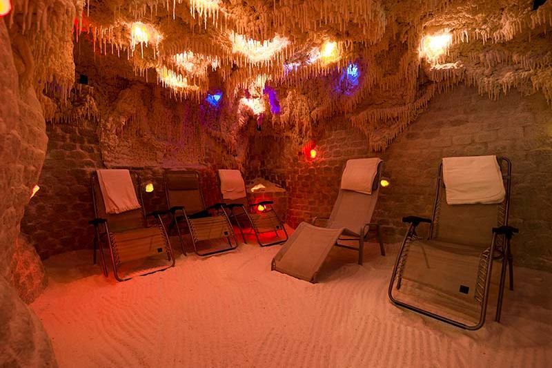 - Salzgrotte mit Liegestühlen